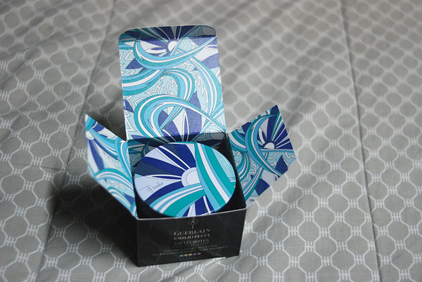 The Guerlain counter I went to didn’t have it, and so, dejected, I was prepared to just wait another week. Alas, the wonderful Pucci print caught my eye! And I’m a sucker for pretty things—everyone knows that.
