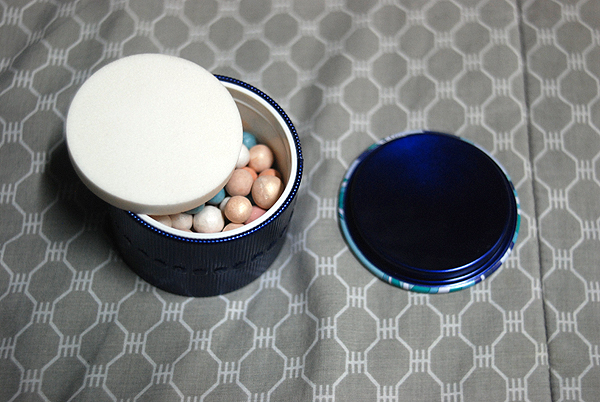 Here is a close-up of the pearls. There are six colors, two matte and six frosted, each designed to enhance your face. Like I said, I can’t really stand using a lot of product so I personally intend to just use this as a finishing powder (for when I do use moisturizers or a BB cream) or by itself.