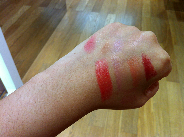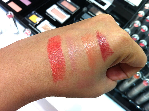The collection features four Rouge Unlimited Lipsticks, swatched here. From L-R: Mon Shu Red, Parisienne Pink, Celebrity Beige, and Luxe Burgundy. The shades are wonderful and the formula was smooth, with decent color payoff. My sister and I actually ended up getting three shades.