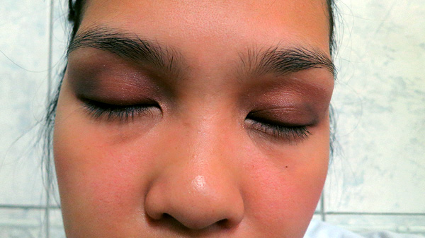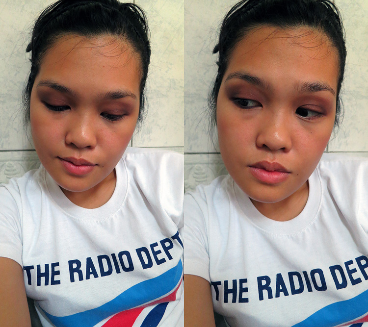 My (actual) right eye, left on your screen, was the result of the purple how-to, and my left eye, or right eye on your screen, was the result of the brown. From the onset, there’s not much of a difference, but then again I’m still practicing my application and blending techniques. 🙂