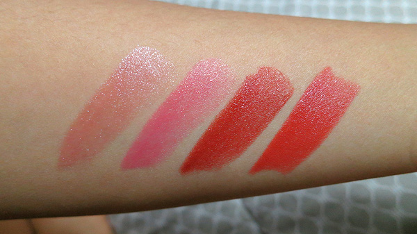L-R: Platinum Pink, Juicy Pomegranate, Spicy, Sun Coral
