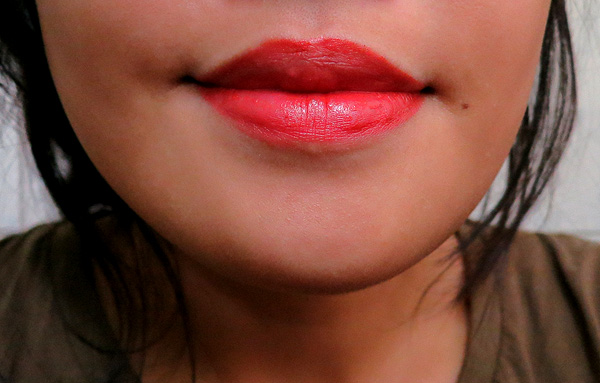 Ultra Rich Moisture Lipstick in Sun Coral Sun Coral is similar to Spicy, though it’s a bit more orange-red. I don’t normally wear bright lips. I think it’s because I have pretty big lips that people don’t normally notice, but with a bright lipstick they kind of draw a bit of attention that I’m not used to. I could get used to this, though. It’s quite pretty. The consistency is the same as Spicy’s, both of which are a bit tricky to apply since they are so pigmented. It’s hard to stay within the lines, but it’s quite possible if you do it carefully.