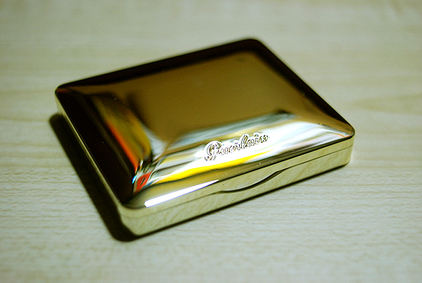Ah! Look at this beauty. It’s a highly reflective (obviously not real) gold finish, with a heft and weight to it. There seems to be a magnet clasp that keeps it shut (not a push button to open), and the mirror is pretty much as big as the palette. It comes with a double-ended sponge-tip applicator with a broad end and a tapered end. It’s so pretty. I have to fight the urge to nuzzle it every time I slip it out of its pouch.