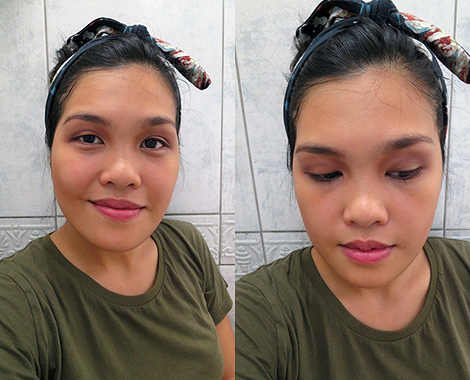 On ze face: Etude House Proof 10 Eye Primer, Fanny Serrano eyeshadow in Beach Sand (as a base), Guerlain Turandot eyeshadow palette, (filched from my sister) K-Palette 0 Kuma Cover Control Concealer in 02 Yellow Beige, (and the ff. filched from my mom) L’Oreal Mineral Bronzer in Brunette, Bobbi Brown Long-Wear Gel Liner in Sepia Ink, Elizabeth Arden lipstick in Smooth Mauve, some mascara I found in my mom’s drawer.