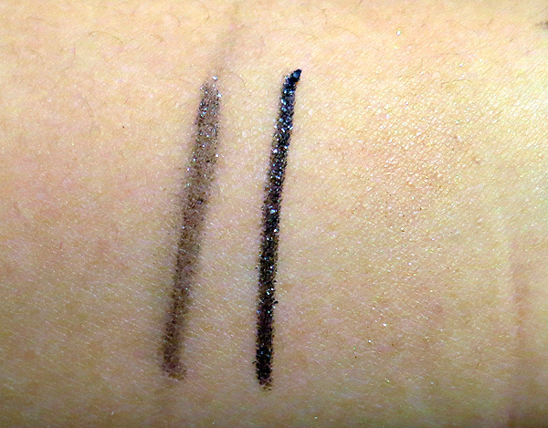 Here’s the 47th Street Liner beside Satellite of Love, which has too-chunky sparkles. As you can see, I tried blending the leftmost swatch of 47th Street (LOL) and it’s not very yielding. It’s very good for a solid, opaque line.