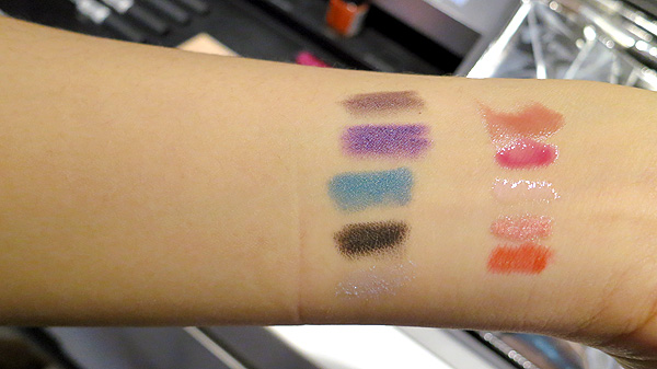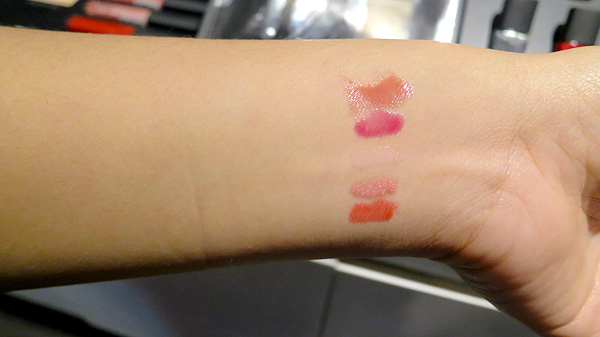 The Larger Than Life Lipglosses (Php 1450) are the first ones I swatched. In order, from the top: Viva, Penny Arcade, International Velvet, Candy Says, and Holly Woodlawn. The formulation is rather nice, though sticky. I was turned off by gloss a few years ago, and this is the first one I’ve tried—and liked—since “going off” of glosses.