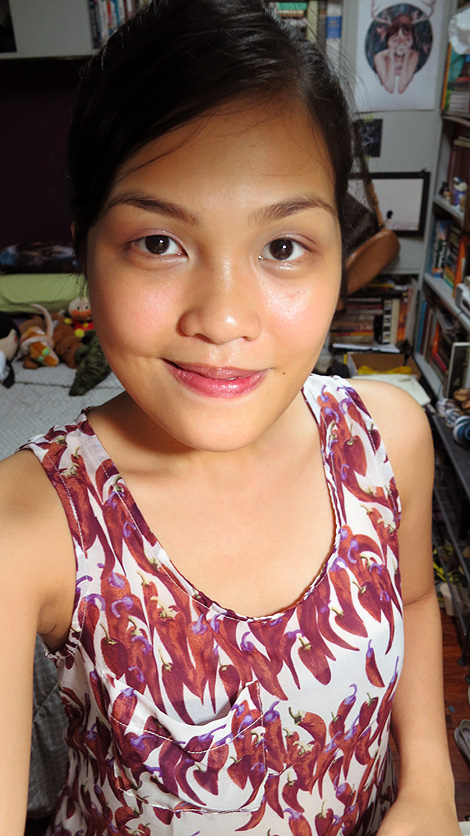 Today, I just had a meeting with Toff about a project he and I are working on. Kept it simple with the two middle shadows from Shu Uemura’s Prestigious Bordeaux Eye & Cheek Palette (shimmery lilac & light satin brown), a pearly pink Fanny Serrano blush, and NARS sheer lipstick in Vendanges. Put on a little medium brown brow powder from The Body Shop, too.