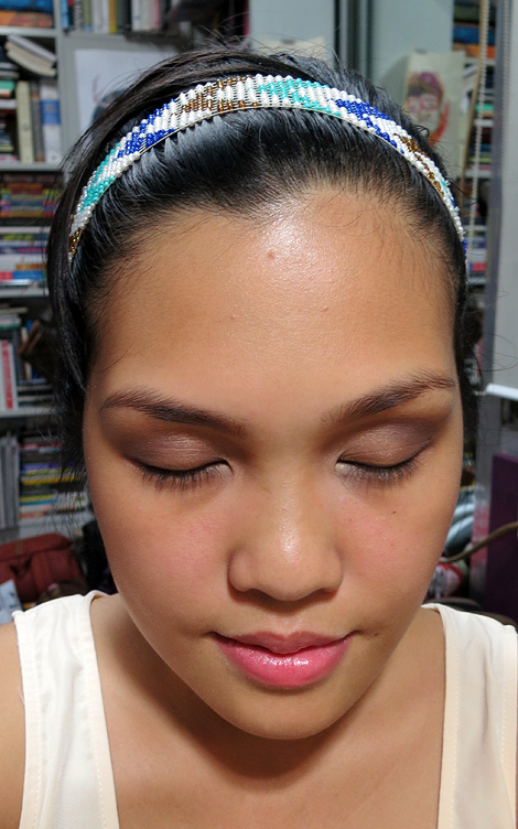 I only have eyebrow powder, an assortment of eye products and eyeshadow (Benefit Lemon Aid, Fanny Serrano, bareMinerals, MAC), a pale pink blush from Fanny Serrano that I got for free when I bought eyeshadow, and Celebrity Beige!