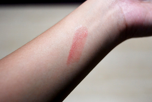First up is Celebrity Beige, a pretty peachy beige nude (phew!) with a smattering of shimmer. It doesn’t look like it can do much, but I love it because it colors my lips just a notch and brightens up my face. It’s great for a very fresh look for the day, I think.