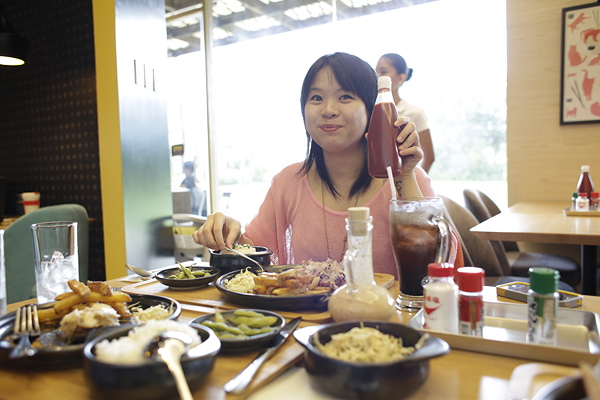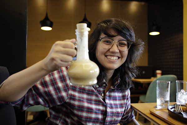 This is Mikka, an upstanding and all-around fun individual, as evidenced by her holding up a ketchup bottle.