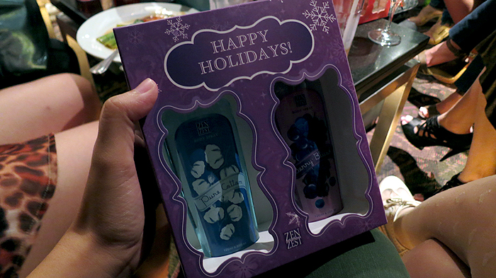 Before the Divas belted their way to victory, the Zen Zest team first introduced their line of Holiday Gift Sets. Melai of Style and Soul hosted the event, while firing off some questions for brand ambassador, Divine Lee, to answer. Sometimes, I really do have a hard time thinking of what to give some of my friends and relatives gifts that they’d appreciate but that will also fit my budget.