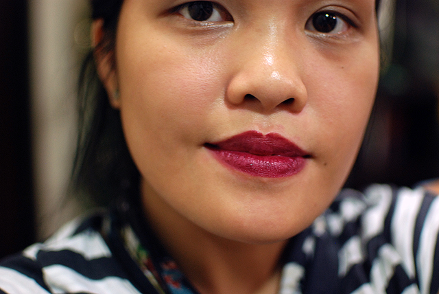 She tried it out, loved it, and told me to give it a shot. Neither of us had really ventured out of the reds, pinks, and peaches in terms of lipsticks, so I was glad to oblige. Refined Wine is such a perfect name for this shade, a rich, red violet perfect for a night out.