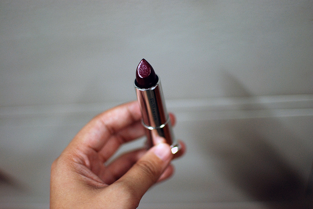 This is going to be a super quick post, as I’m in the middle of a frillion different things, but when my sister brought home this lipstick, I couldn’t not post about it! Last Sunday, she’d been eyeing a rich purple-y lipstick she swatched on herself, but didn’t end up getting it. I guess she was haunted by it because when she got home from getting her tennis racket gutted at the mall, she also came home with this!
