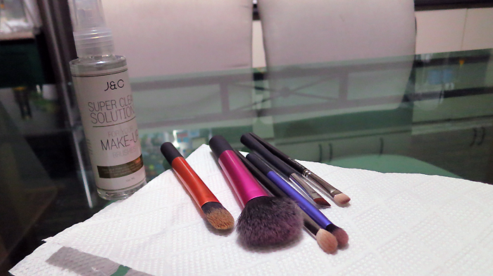 I discovered J&C Super Clean Solutions Makeup Brush Cleaner while perusing my favorite local beauty blogs, and decided to get one for myself. At Php 400 per 120ml bottle, it’s cheaper than its MAC ($14/235ml) or Clinique ($14/236ml) counterparts. So, when I got a hankering to clean my brushes, I figured I might as well show you how this works, too.