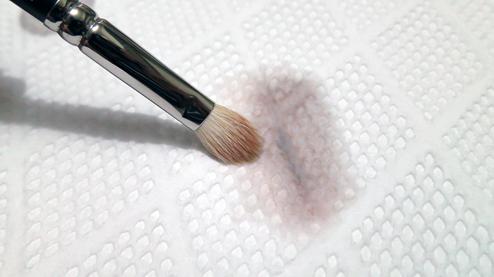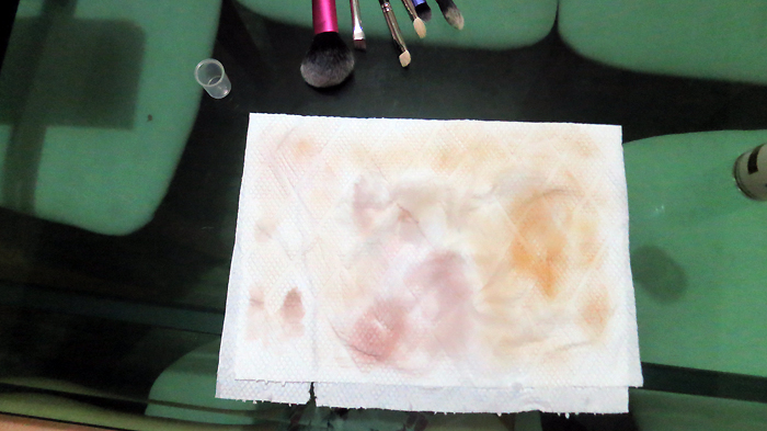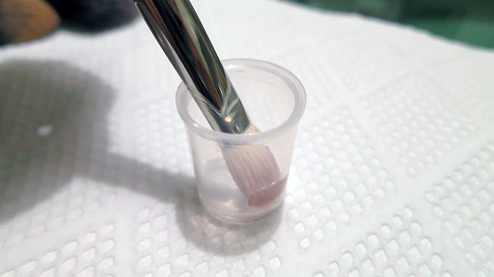 Wipe the solution-laden bristles on a paper towel to clean. I usually use a face towel that I can throw in the wash when it gets really dirty. It’s also more absorbent, I found. But, as I said, this was done late at night and I couldn’t be bothered.