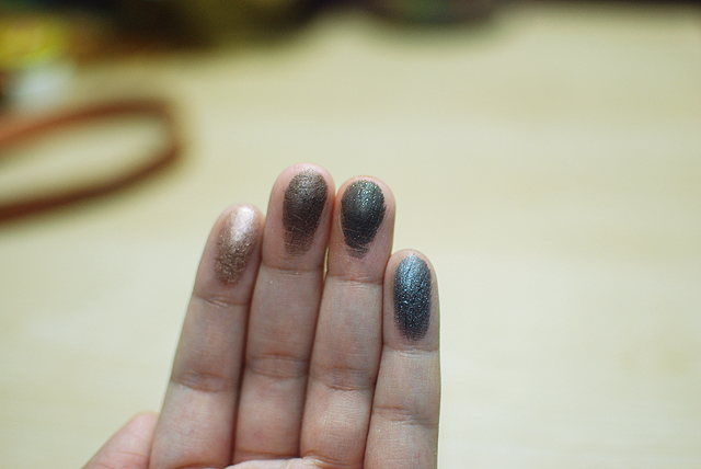 • Gunmetal — shimmery dark blue-grey. If you want your eyes to smolder, this is what you use.
