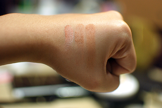 Swatched, L-R: bareMinerals All Over Face Color (Warmth), Tarte Amazonian Clay Matte & Waterproof Bronzer (Park Avenue Princess), Wet n Wild Bronzer (Princess)