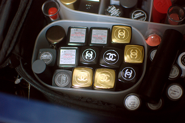 I couldn’t fit a container in this little pocket in the same row, so here, I just have my MAC (8), shu uemura (2), and Make Up Store (1) lipsticks.