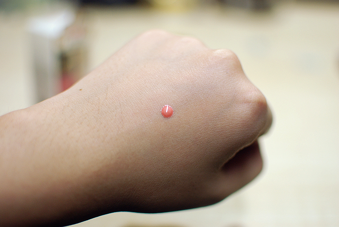 This is a really pretty coral, and it’s called Coral Cream (RD310). This is the first and only one my mom has opened, so this is the only one you’ll see for now. 🙂 After placing the drop, blend it out quickly: