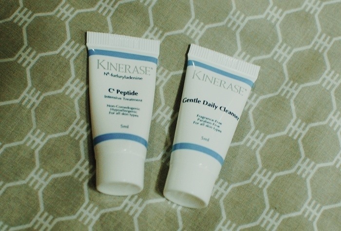 Last, but not the least, two small samples from this new skin care brand called Kinerase. I got the Gentle Daily Cleanser (Php 2800, 200ml; sample size: 5ml) and the C6 Peptide Intensive Treatment (Php 5000, 40g; sample size: 5ml).
