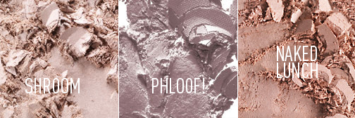Some really lovely highlight colours are Shroom, Phloof!, and Naked Lunch*. Actually, Naked Lunch is often used all over the lid. It’s so pretty!