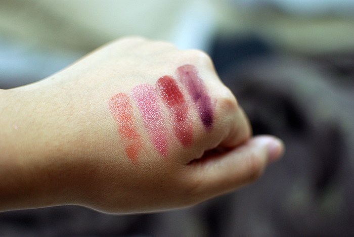 These are pretty sheer and are supposedly buildable but I could not really get them to show up on my lips in an intensely opaque manner.