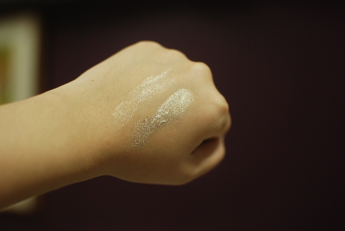 The shade I got, Glammy Goes To…, is a cool pale gold, almost like a champagne. The texture is a bit stiff, similar to the Stila Smudgepot, but this is actually a bit more workable because the texture is better. It still has a tendency to make eyelids crepe-y if you pack on too much, but you can just use it as a light wash of color.