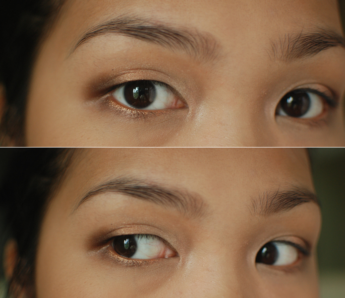 On my lower lids, I applied a thin line of Damask close to the lower lash line and onto my water line. Under that, I smudged on Brocade with a small pointed brush.
