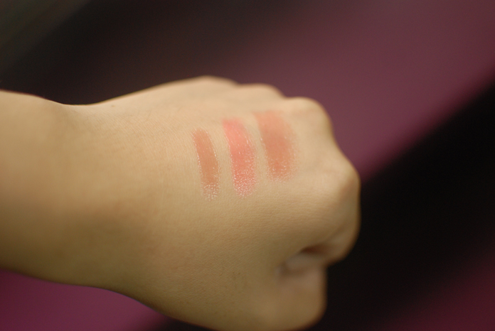 As swatches, they don’t look like they differ very much. Just random variations of the same nude gloss. On the lips, however, there is a significant difference. At least, in my mind: