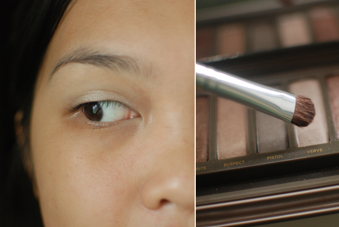 2. Take a flat shader brush and apply a light shadow all over your mobile eye lid. I used Verve for this look.