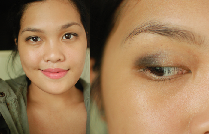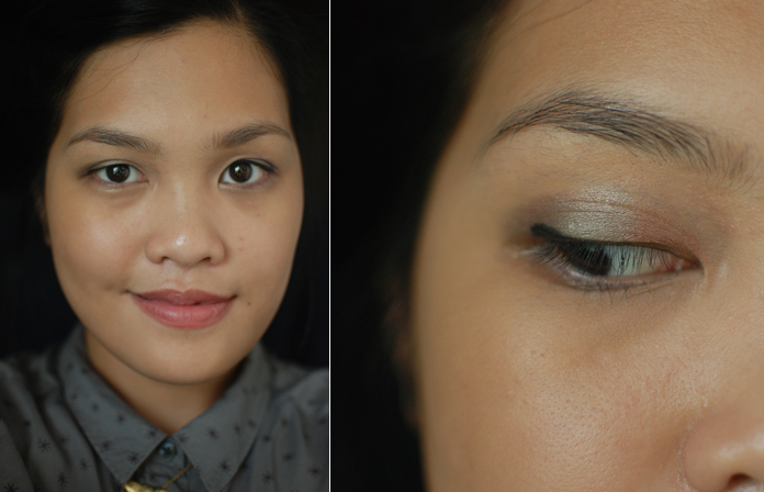 I used the Revlon Mineral Blush (Roseberry), and the Maybelline Lipstick (Chestnut) that was also in the box, but I topped it off with a Le Métier de Beauté Lip Crème (Café Crème), which had rubbed off by the time I took this photo.