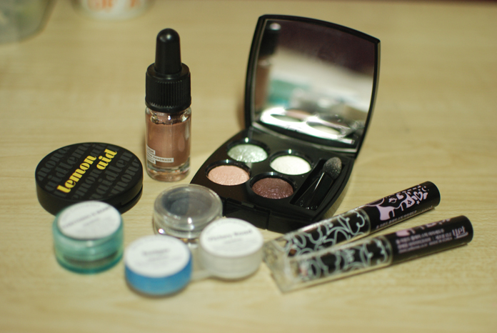 EYESHADOW — Chanel Ombres Fleuries in Délicatesse, Benefit Lemon Aid, LUSH Sophisticated, yet Shadow Sticks in Nude Pink & Bronze, Shiro Cosmetics eyeshadow in Rebellion, Everything Is Bears, Victory Road, and Badger