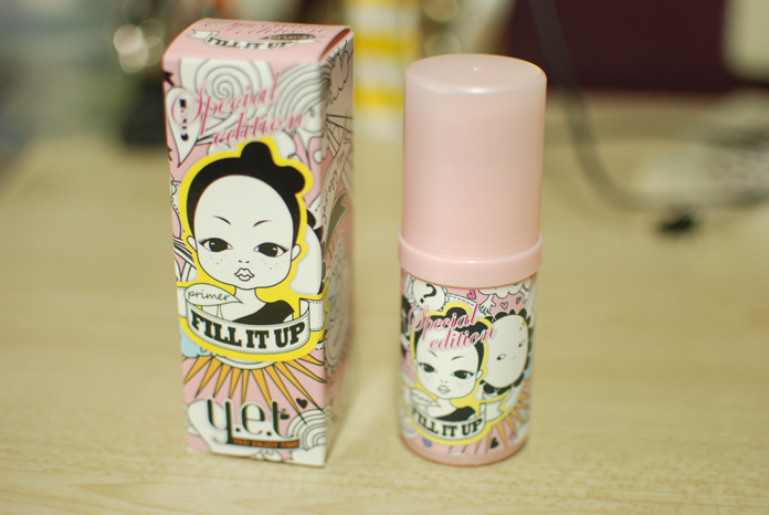 Anyway, at a bazaar a few weeks ago, I spotted this Korean brand I haven’t heard of yet and decided to buy a few things with the spending money (about $22, lol) my dad gave me. With half of that, I bought a face primer called Fill it Up Primer by y.e.t. cosmetics, which is a super new brand that launched just in 2012.