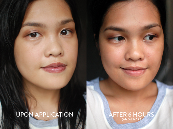 I was pretty much amazed at how well it controlled the oils on my face. I usually get shiny on my T-zone (esp. the bridge of my nose), and my cheeks. While this doesn’t feel velvet-y smooth to the touch (au contraire, it is quite gunk-y and yuck), at least it looks pretty decent. I didn’t retouch with a powder or blotting paper.