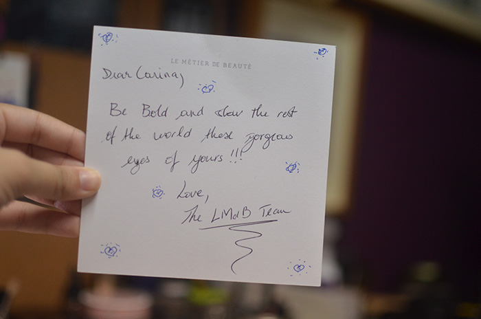 Signing off with a cute, personalized card from the Le Métier de Beauté team: