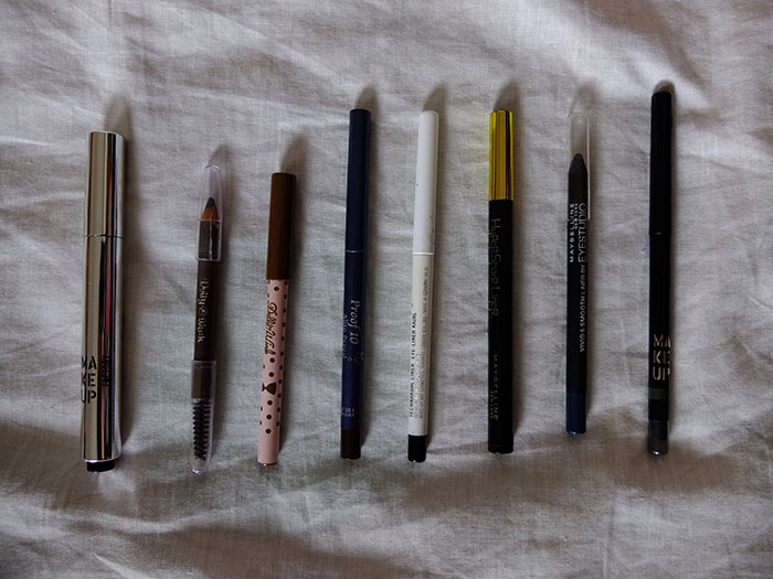 I got this MAC Kohl Liner from a press kit and I like how it goes on so smoothly. I was always a fan of pencil eyeliners until I tried this Hyperliner one from Maybelline. It’s got the thinnest brush tip so it’s easy to use without ending up with panda eyes! The colored eyeliners (I have a blue and a green one) are for when I want a pop of color but don’t want to use eye shadow.