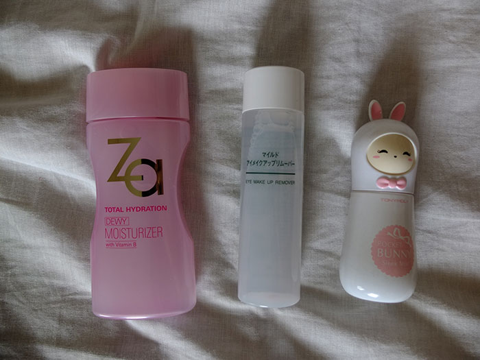 These don’t fit in my kikay kit, but just thought I’d put it here too. I use ZA Total Hydration Dewy Moisturizer before putting on makeup. For removing eye makeup, I’m on my second bottle of Muji’s Eye Makeup Remover. Etude House’s Lip and Cheek Remover (hehe) also works. This cute bunny mist is supposedly for setting your makeup, but I almost always never remember.