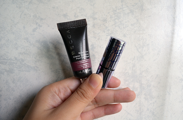 For cheeks, I just have a BECCA Beach Tint in Raspberry. I wanted to bring either Grapefruit or Guava, but I’m pretty sure they won’t show up if/when I tan. I also have this small sample of Benefit Watt’s Up!