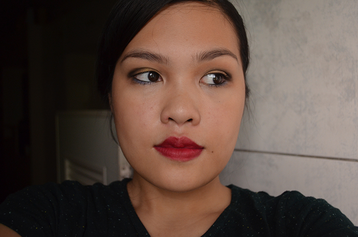 I lined my lower waterline and tightlined my upper waterline with Perversion, and smudged a blue eyeshadow on my lower lash line. I curled my lashes and added Maybelline’s The Rocket Mascara, which is proving to be one of my favorites. Le sigh.