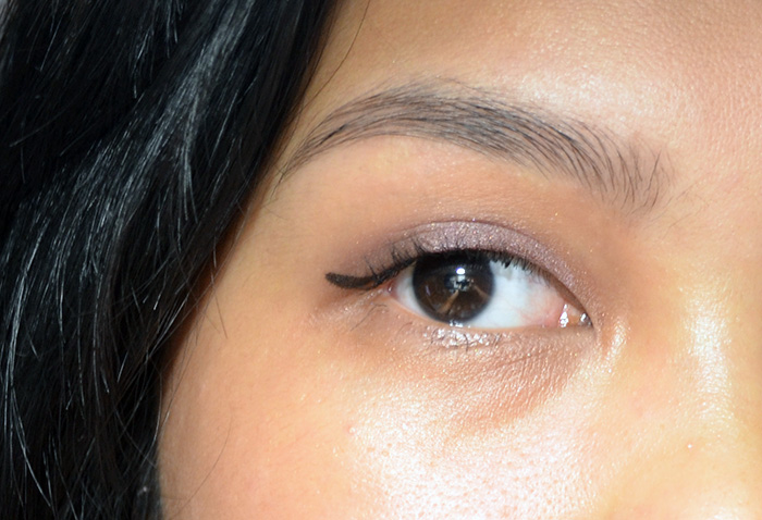 I’ve used it here, under a cool, silvery taupe shadow, though I think I would use it by itself and smudge a darker color along the lash line next time.