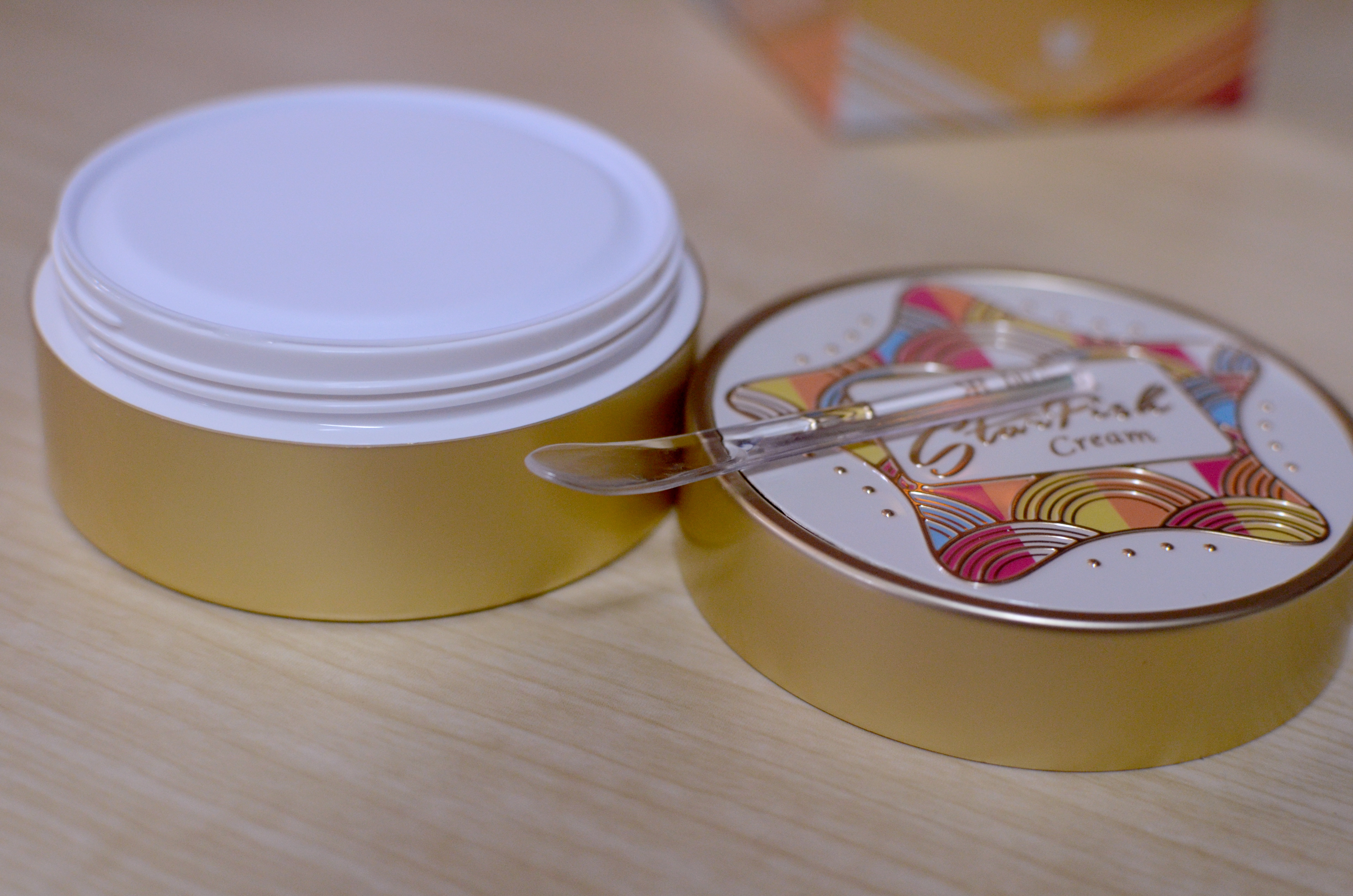 First up for review, I have the Mizon Returning Starfish Cream. It is a “highly functional cream containing starfish extract, the symbol of a strong autogenous power, provides elasticity and moisture to the skin, manages combined skin problems such as the improvement of wrinkles and ligne action, etc. It is a special formula for the shape-memory returning the skin to the optimum condition the skin memorizes.”