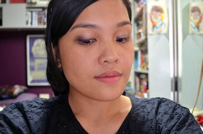 Here, I wore Carinae on the inner 2/3 of the eye, with A Song of Ice and Fire on the outer corner and blended out. I lined my upper lash line with the Urban Decay liner in Ultraviolet, which turns out to have a bit of fall-out/smudging problems. This is the first time I wore a cream shadow under the shadows, instead of the usual neutral eye base or primer.