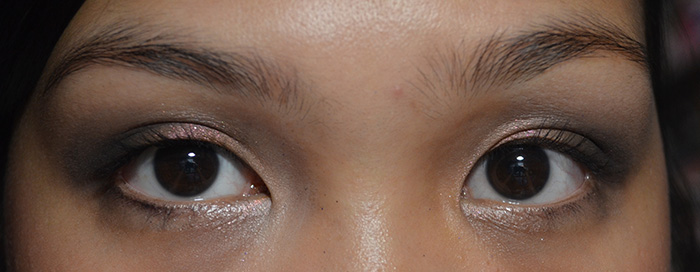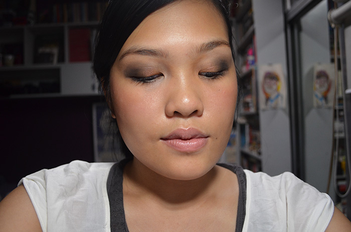 Lyra, on the other hand, is a beautiful blackened plum. I noticed in the swatch that it kind of faded into black at the edges (almost a ring around the purple-y swatch), and it looks as though it’s a very opaque purple sheen over a black base. For this look, I really had to pat on Lyra with a finger after blending a first layer of it out, just so the beautiful purple is visible.