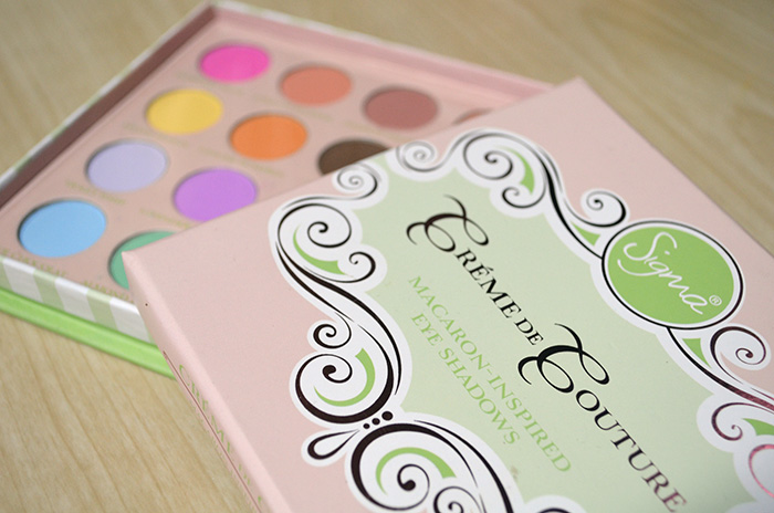 Hey guys, just a quick swatch post of one of my Christmas gifts to my sister—the Sigma Crème de Couture Palette. I had such a strong urge to buy this for myself, but let’s face it. I’m not going to get a lot of mileage out of this one. It’s a beautiful collection of pastel-y matte eyeshadows heavily inspired by French macarons.
