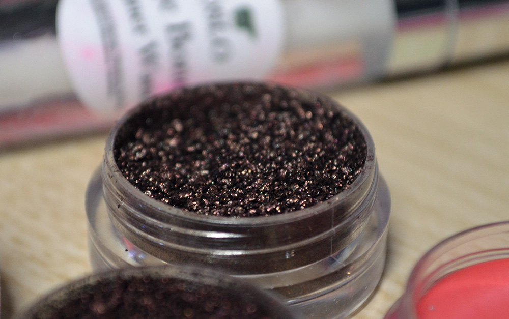 Voltanis is a kind of a patina’d gold that’s pretty frosty as a finish. It’s described as a “Smoldering, metallic, deep primal gold.” It’s quite pretty and arrived to me the clumpiest.