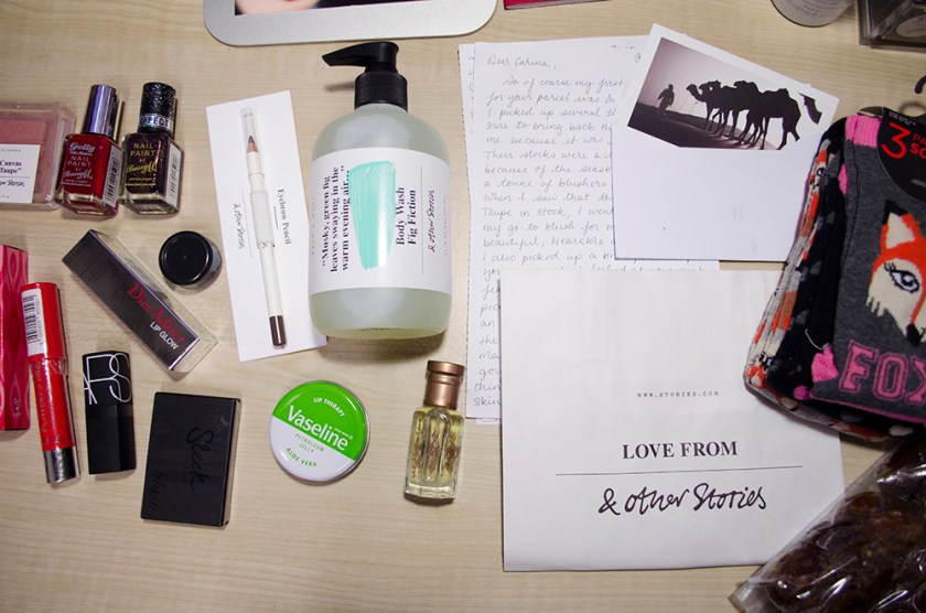 A pretty London-themed tote // Laura Mercier Hand Crème in Crème Brûlée // & Other Stories Eye Colour in Percaline Khaki // & Other Stories Blush in Canvas Taupe // Barry M (Gelly) Nail Paint in Blood Orange // Barry M Nail Paint in Countess // a few pumps of Burberry Foundation in Trench No. 5 // & Other Stories Brow Pencil in Bouclé Greige // & Other Stories Body Wash in Fig Fiction // Arabic Perfume Oil (!!!) // Vaseline Lip Therapy in Aloe Vera // Sleek Blush in Coral // Dior Addict Lip Glow // NARS Lipstick in Niagara // MUA Power Pout in Runway // Tarte Glamazon Pure Performance Lipstick in Bold