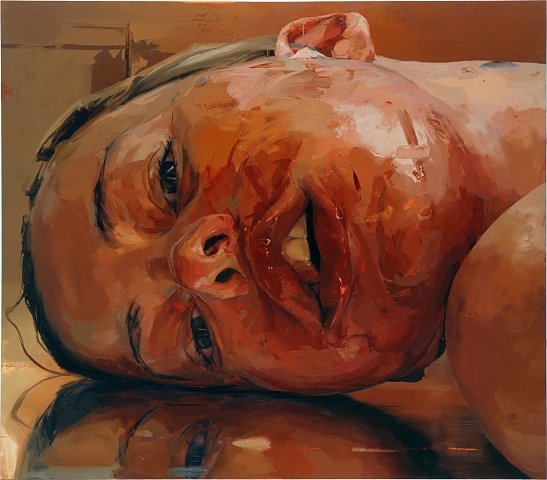 Jenny Saville: I have to really work at the tension between getting the paint to have the sensory quality that I want and be constructive in terms of building the form of a stomach, for example, or creating the inner crevice of a thigh. The more I do it, the more the space between abstraction and figuration becomes interesting. I want a painting realism. I try to consider the pace of a painting, of active and quiet areas. Listening to music helps a lot, especially music where there’s a hard sound and then soft breathable passages. In my earlier work my marks were less varied. I think of each mark or area as having the possibility of carrying a sensation.”