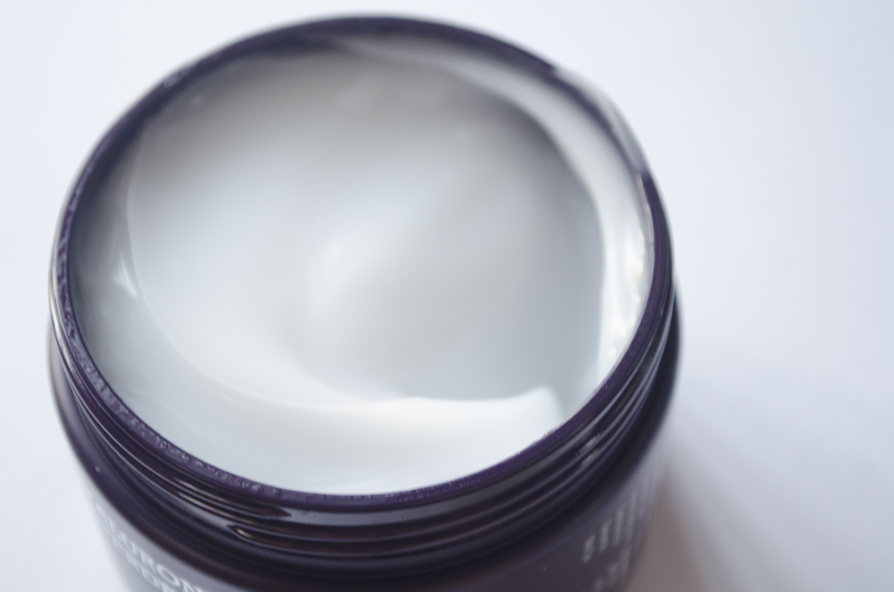 The M-Chloi Hyalyronic Acid Waterdrop Cream* is housed in a pretty sweet regal-looking tub with a substantial scooper. The cream itself resembles a gel, though more opaque. It keeps its shape but has great give when you scoop it out or spread it over skin.