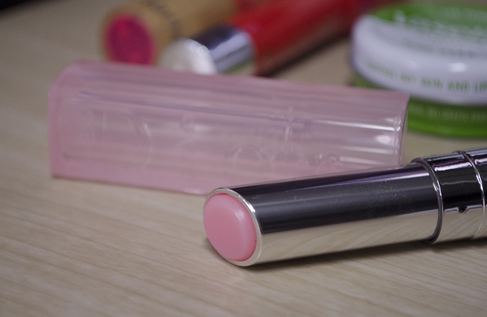 It’s not very slick, but it moisturizes the lip and imparts just a hint of pinky coral goodness that brings your lips to life. It’s a “customized balm” that enhances the natural color of your lips. Think of it as a true MLBB, tailored to you. It’s great to wear on its own and under another lip product.