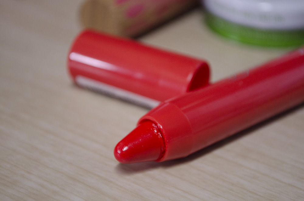 The formula is glossy and sheer, with more slip than the chubby crayons I’m acquainted with. They’re not that balmy, either. I’m not used to such a warm shade for the lips, but now’s as good a time as any to give it a shot. 🙂